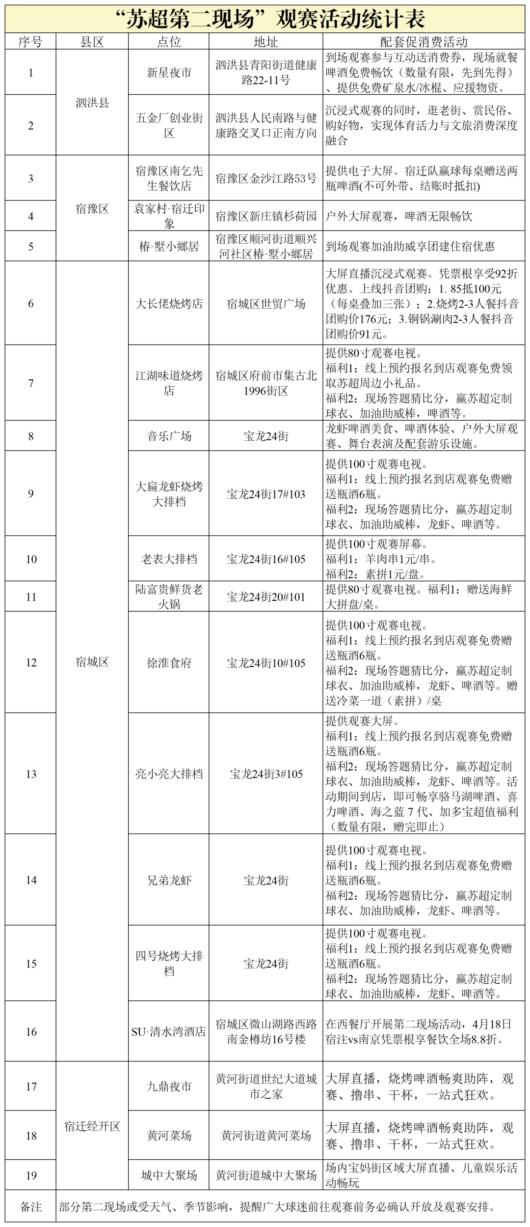 3.4月18日18点起,将赠送到场市民每人一份煎饼卷盐水鸭、两个小笼包、一杯宿迁队队徽联名啤酒,送完即止。