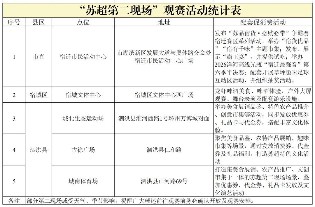 ⭐内容:设置“联合水务·宿货优品”市集、互动打卡墙、点球大赛小游戏,到场就有机会领“苏超”定制应援礼包,还能免费抽奖、免费领啤酒,另外还有服装、数码、餐饮等海量优惠券!