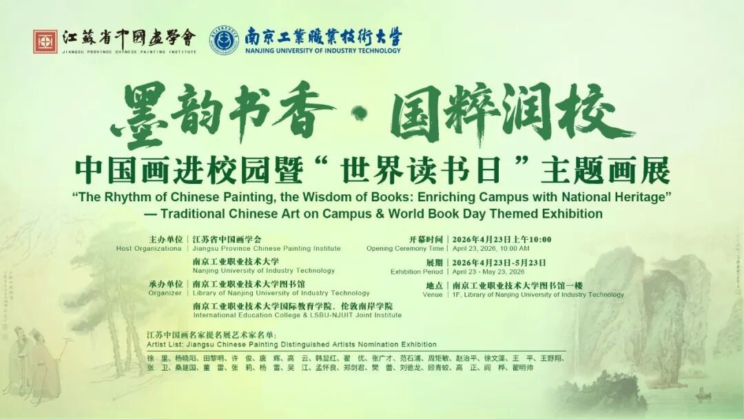 四月芳菲,书香沁心,恰逢4月23日世界读书日,阅读为思想扎根沃土,文化为心灵丰盈底色。中华优秀传统文化,是中华民族生生不息的根脉与灵魂;中国画艺术,更是镌刻东方美学、承载民族风骨、彰显人文精神的璀璨瑰宝。一笔一画,藏天地乾坤之妙;一墨一纸,书华夏岁月华章。为推动书香与墨韵相融共生,让传统文化浸润校园肌理,值此世界读书日之际,我们特举办墨韵书香·国粹润校——中国画进校园暨“世界读书日”主题画展,以书画为媒,以阅读为桥,将丹青雅韵引入南京工业职业技术大学,为书香校园再添一抹隽永文化华光。