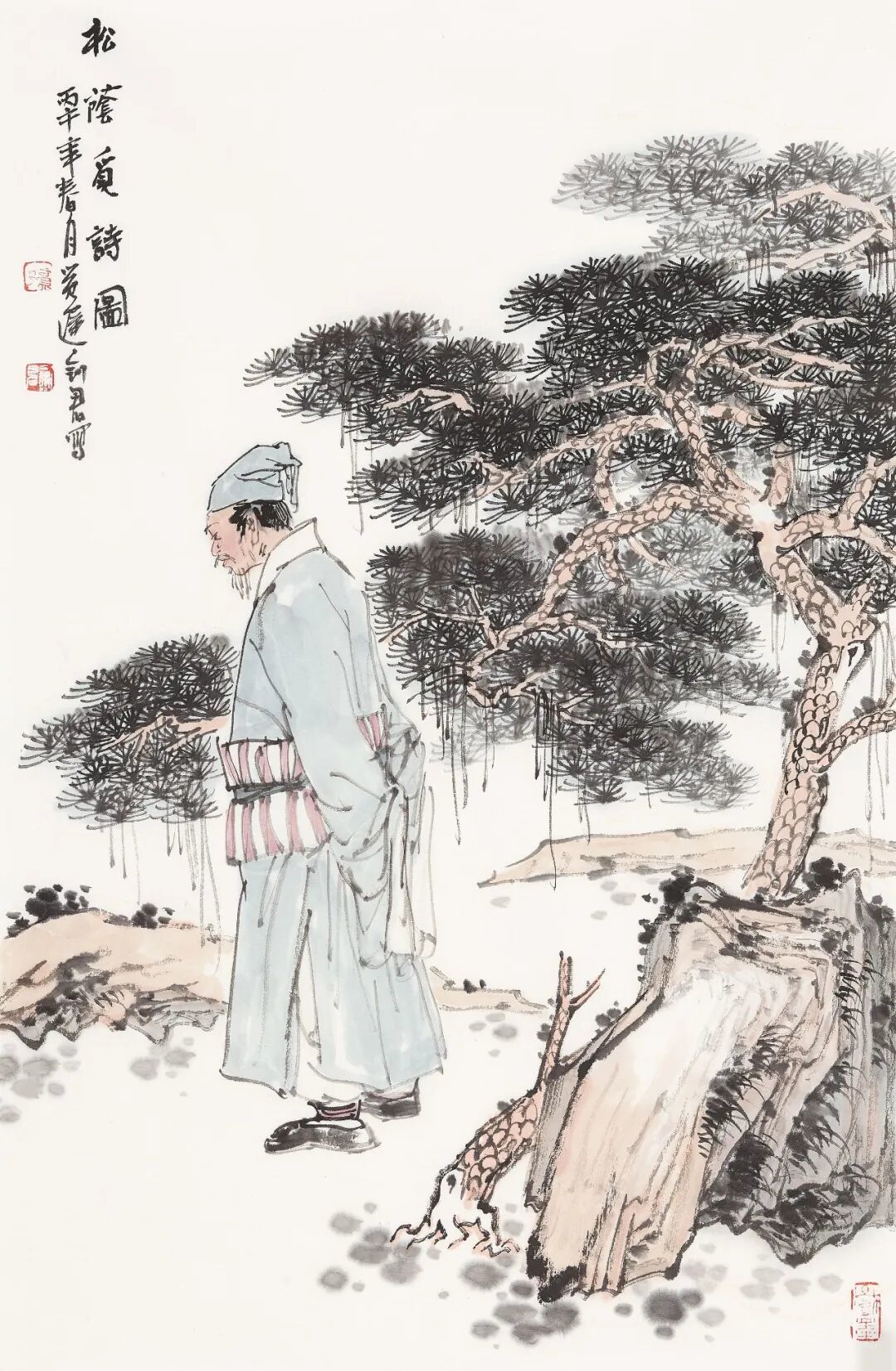 郑剑君 《松荫觅诗图》