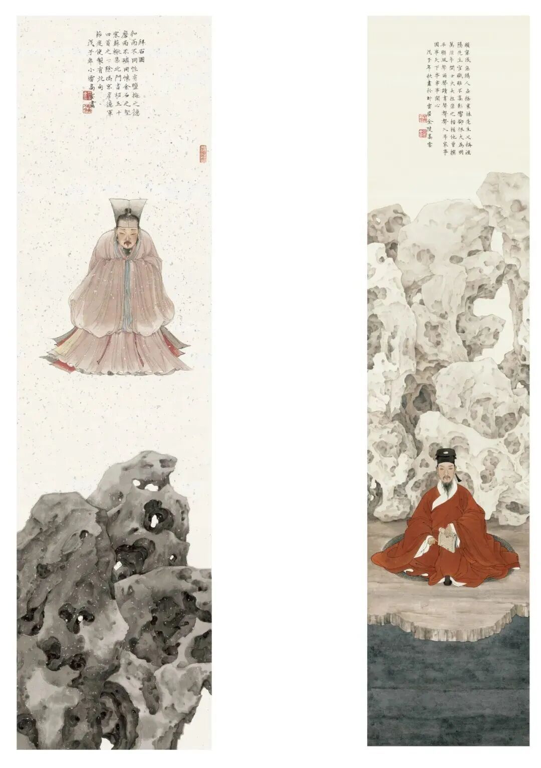 高云 《拜石图》(左) 《高士图》(右)