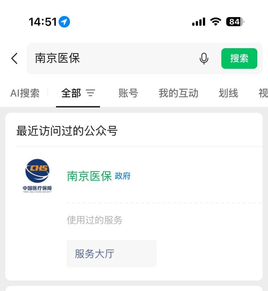 1、微信搜索“南京医保”公众号,进入“服务大厅”;