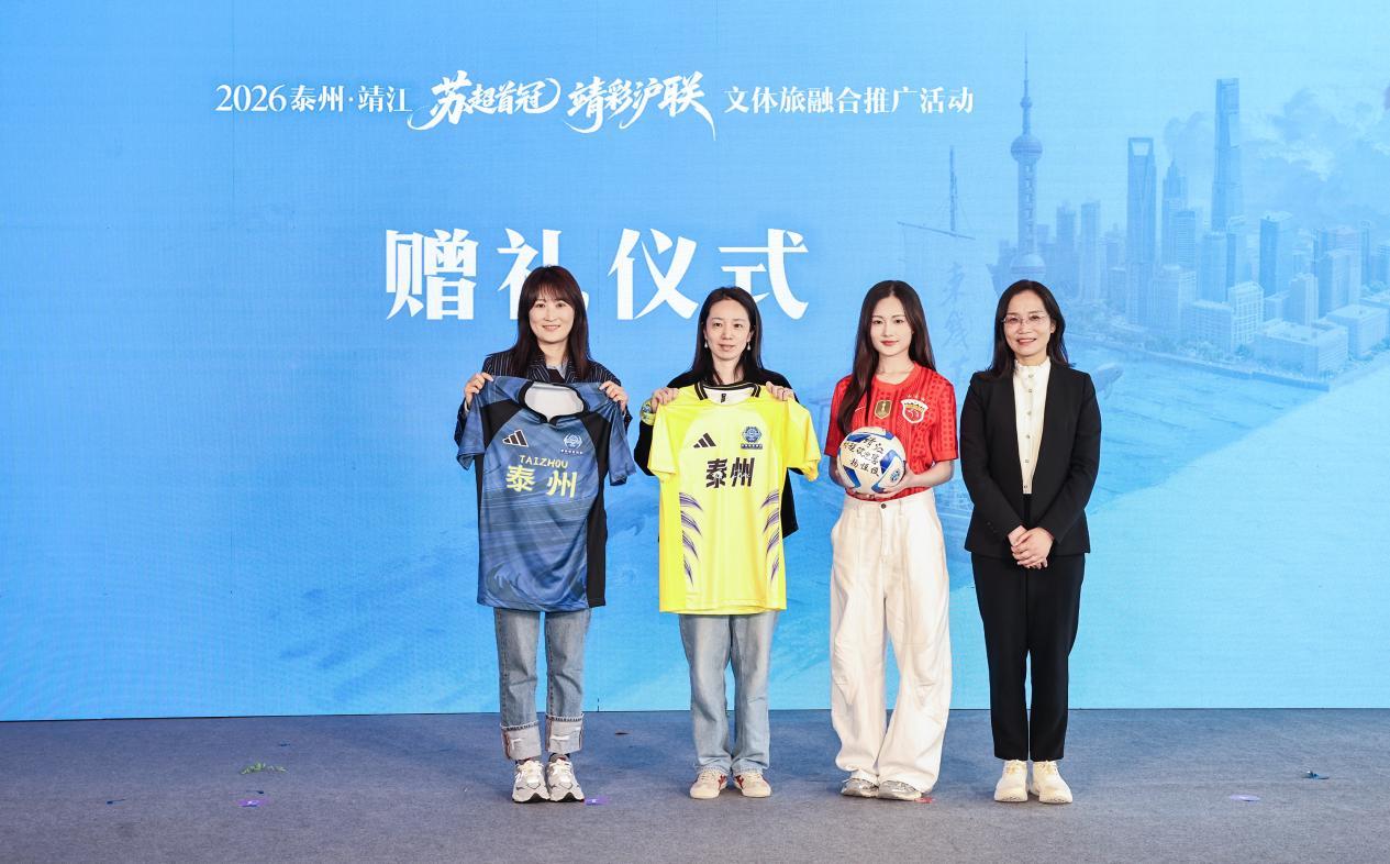 黄浦江潮涌,扬子江欢歌。4月23日上午,“从中共一大到东线第一帆”2026泰州·靖江“苏超首冠 靖彩沪联”文体旅融合推广活动在上海北外滩滨江举行。靖江带着一江春水的温润、冠军之城的热血、融沪发展的诚挚,与上海赴一场春日之约、文体之约、融合之约。
