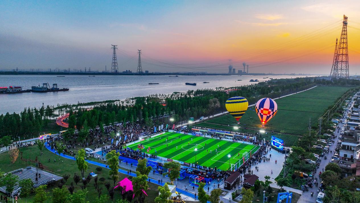 2026年,靖江发扬冠军精神,举办乡村足球超级联赛。4月19日,靖江“村超”揭幕战在长江之畔火热打响,以“足球+”绘就乡村振兴新图景。足球成为连接城市的热血纽带,让沪靖两地交流充满激情与活力。