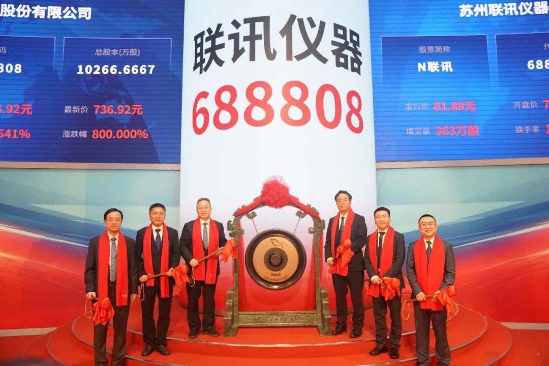 苏州市委常委、副市长顾海东,苏州联讯仪器股份有限公司董事长胡海洋,上海证券交易所数字化专业委员会副主任兼技术公司董事长张晓京,中信证券股份有限公司党委委员、执行委员会委员张皓,苏州市委金融办常务副主任曹晔;区党工委副书记、管委会主任吴琦,区领导李志军、沈明生出席上市仪式。