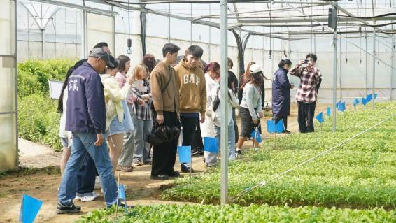 4月24日,江苏第二师范学院组织留学生赴南京市溧水区晶桥镇开展专题实践教学活动。本次活动以统一战线工作为引领,带领留学生先后走进普仁有机蔬菜基地、曹庄富硒生态园、石山下村,沉浸式了解中国现代农业发展、生态农业模式及乡村非遗文化,实地感受中国式现代化乡村建设的生动实践。