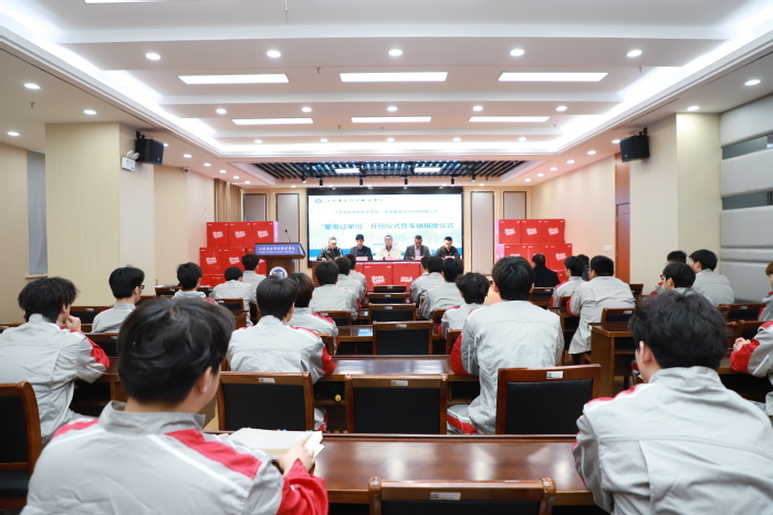仪式上,校企双方共同举行教学车辆捐赠授牌、订单班教师互聘仪式,为企业导师与校内导师颁发聘书、为学生代表颁发入班大礼包。
