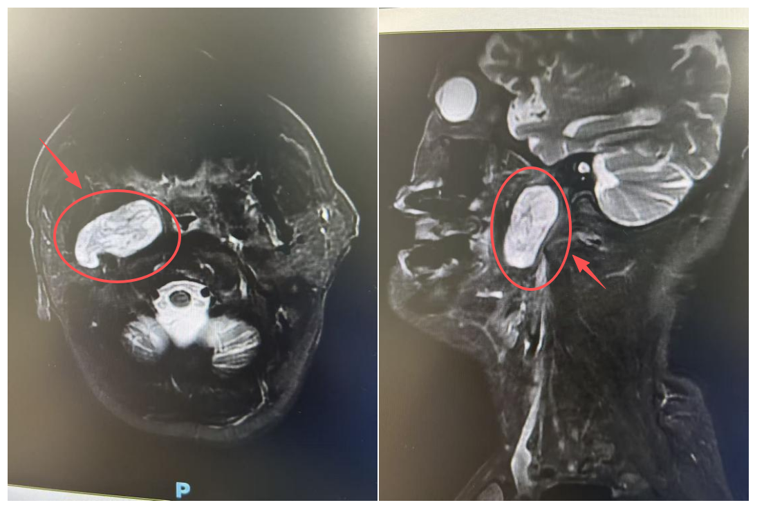 两年前,王爷爷在检查中发现自己的咽旁间隙长了一个肿瘤。虽然医生评估可能为良性,但近期复查显示肿瘤范围有所增大,已经达到5×2.5×5cm,相当于一个鸡蛋这么大。这让王爷爷和家人忧心忡忡——肿瘤继续增长,可能压迫周围重要的神经和血管,影响吞咽及呼吸功能,甚至带来更多的风险。这就像一把利剑,时时刻刻悬在头顶上。