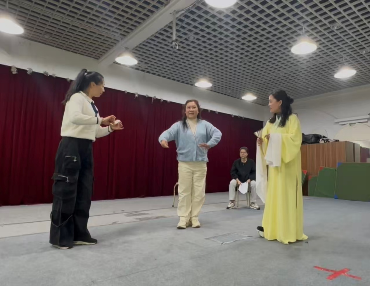 书房探病一折,唱腔由高亢转低回,真假声交替间,那份“近在咫尺不能相认”的隐忍,让整个礼堂安静下来。金殿之上,皇帝步步紧逼,孟丽君从容周旋。全剧高潮处,台前观众几乎屏住了呼吸。一位同学后来在朋友圈写道:“那段对手戏我手心都出汗了。”