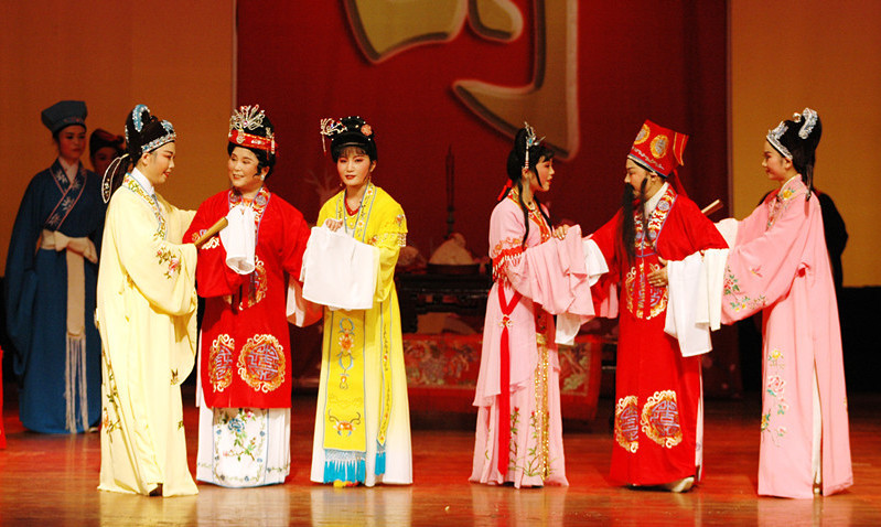 锣鼓声起,大幕轻启。舞台中央,一袭红衫的“孟丽君”款步登场——这是她化名郦君玉官拜丞相后的第一场重头戏。
