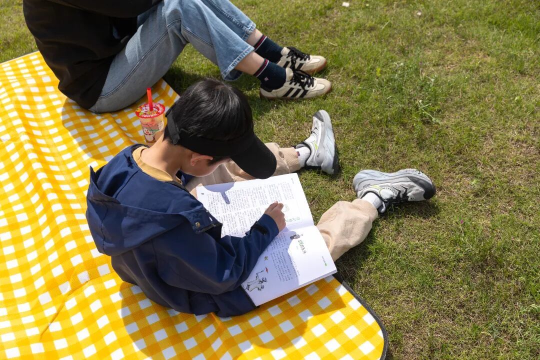 草坪休闲阅读区是最松弛的一角。野餐垫上散落着各类书籍,居民们或坐或躺,随意翻阅,享受难得的惬意时光。更有不少读者在书中遇见“一见钟情”,当即提笔写下阅读感言,将心仪的好书带回家中细读。书与人的缘分,在这一刻悄然定格。