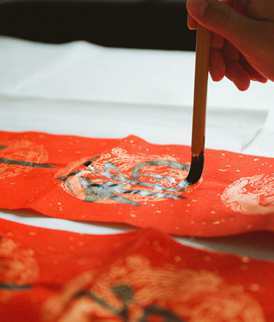 古时城里人过年更换春帖,春帖又叫作“春联”。春节前一二十天,私塾的教师和学生写了春联去卖,并在私塾门口写上“春联处”。大多写千金、百顺、宜春,还写一财、二喜以及家声、世泽等吉祥话,作为门联,或者摘唐宋人的诗词为楹联。